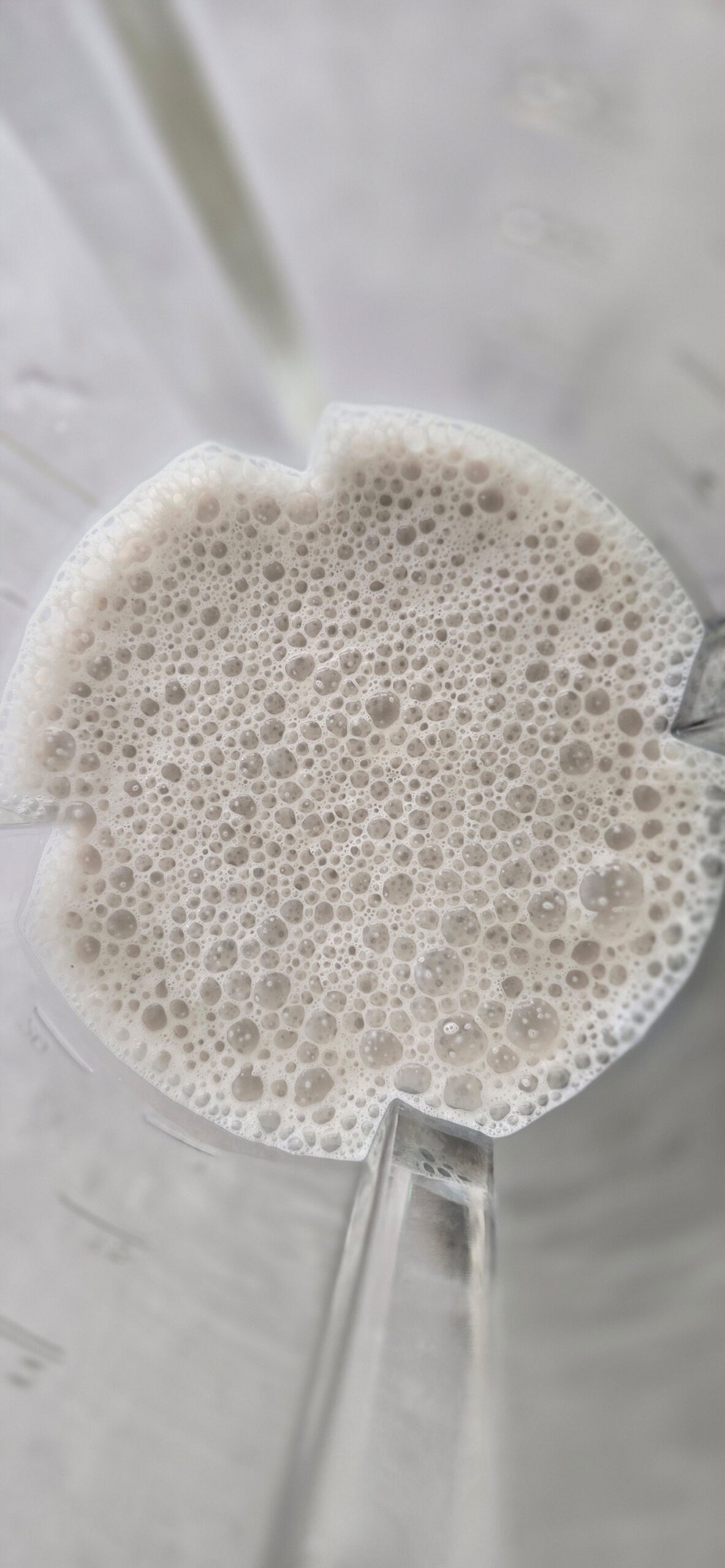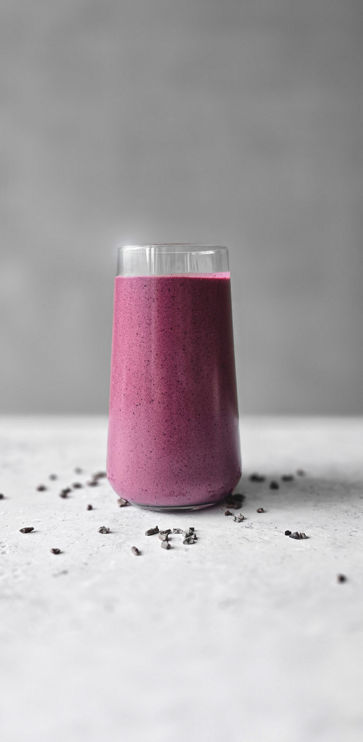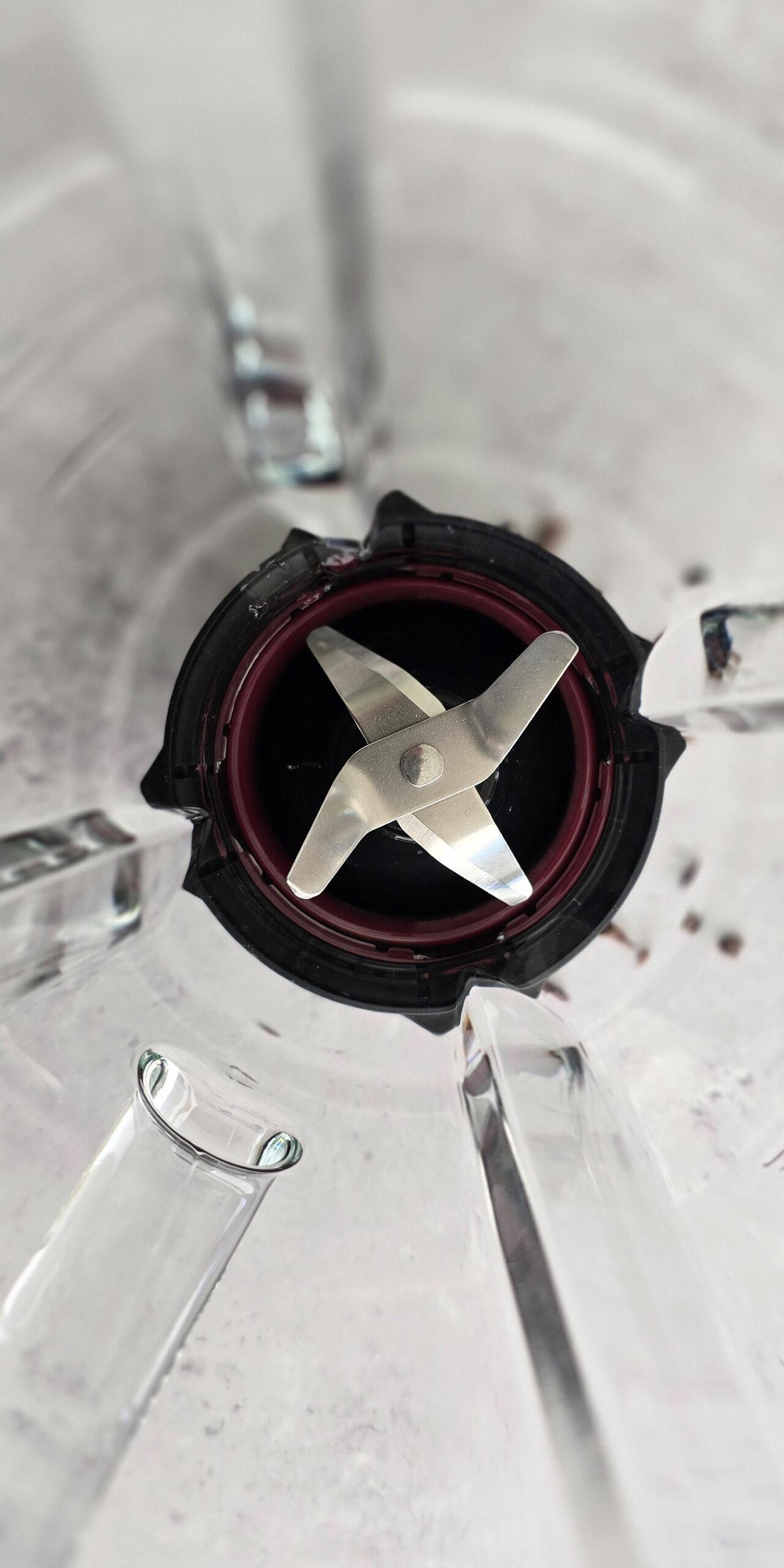 **Cashew-Milch (500 ml)** - Flüssige Basis immer zuerst → verhindert Anhaften & schont Messer **Kokosöl (1 TL, flüssig)** - Früh reinjagen → Öl verteilt sich besser in Flüssigkeit (Emulsion) **Pulverkomponenten - Pulvermischung auf Flüssigkeit legen verhindert Klumpen:** - Ashwagandha (½ TL) - Zimt (½ TL) - Flohsamenschalen (2 TL) - Rote-Bete-Pulver (1 EL) **Hanfsamen (2 EL, geschält)** - Sorgt für cremigere Textur **Whey Isolat (3 EL)** - Gut löslich, lässt sich spät zugeben ohne Klumpen **Banane (1 Stück)** - Gibt Bindung, schützt trockenes Pulver **TK- oder frische Beeren (je 300 g)** - Obenauf, kühlen den Mixvorgang, bringen Volumen **Optional - Kakaonibs (1 EL)** – Ganz zuletzt, da sie sonst ungleichmäßig verteilt werden oder Klumpen ansetzen ### Mix-Einstellungen: - Stufe 1 (10 Sek.): Kurz anmixen (vermeidet Staubentwicklung) - Stufe 2–3 (30–45 Sek.): Cremig aufmixen - Pulsieren (5–10 Sek.): Am Ende für gleichmäßige Verteilung